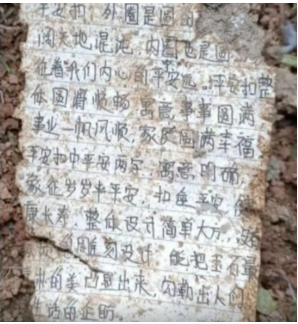 The note describes a jade disc, a good-luck pendant that symbolises “peace, luck and safety” in traditional Chinese culture. The note was believed to be written by a female passenger with the surname Xiang, who was in her 20s.