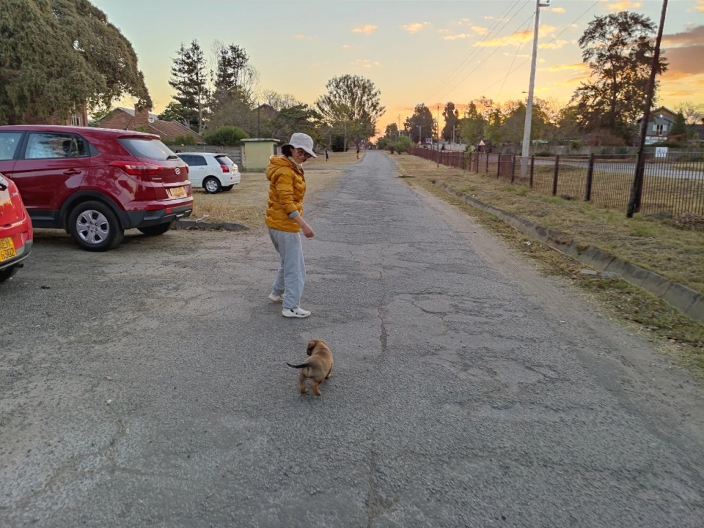 Like our chickens at home, Laifu also fell ill once. One day we noticed that it seemed to have a poor appetite, not eating much, and it didn’t seem so excited when we took it out, resting after walking a short distance. We didn’t pay too much attention to it for the first two days, but on the third evening, we started to get nervous. Fortunately, the UZ’s veterinary hospital had someone on duty 24 hours a day. The doctor took blood samples for testing, gave it injections, and medication, and two days later, it was back to normal. The problem diagnosed by the doctor was an infection from tick bites, and he helped us order regular anti-tick medicine to solve the problem. This time, the intervention of humans had an immediate effect. But the destructive power and danger of those tiny ticks were chilling.